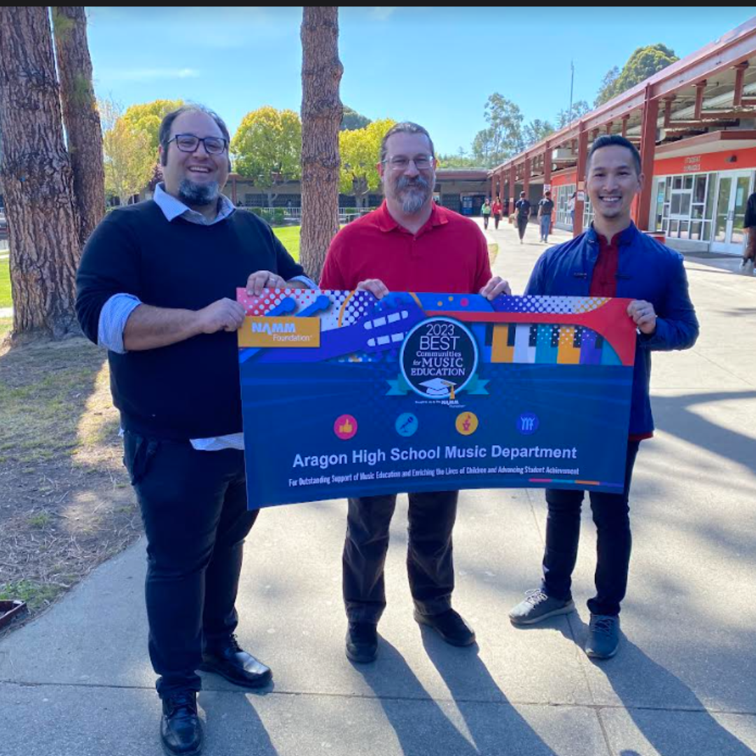 Aragon High School’s Music Department has been honored with the Best Communities for Music Education designation from The NAMM Foundation for its outstanding commitment to music education. Now in its 24th year, the Best Communities for Music Education designation is awarded to districts that demonstrate outstanding achievement in efforts to provide music access and education to all students.