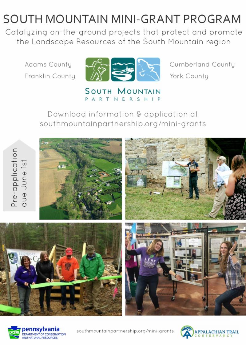 The South Mountain Partnership Mini-Grant Program was developed in 2009 and is administered by the Appalachian Trail Conservancy. Financial support is provided by the Department of Conservation and Natural Resources through the Environmental Stewardship Fund. To date, over $345,000 in grants have been awarded, with over $750,000 in matching funds leveraged by the grantees - a return of over double.