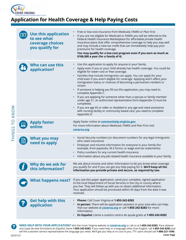 - Call Cover Virginia at 1-855-242-8282