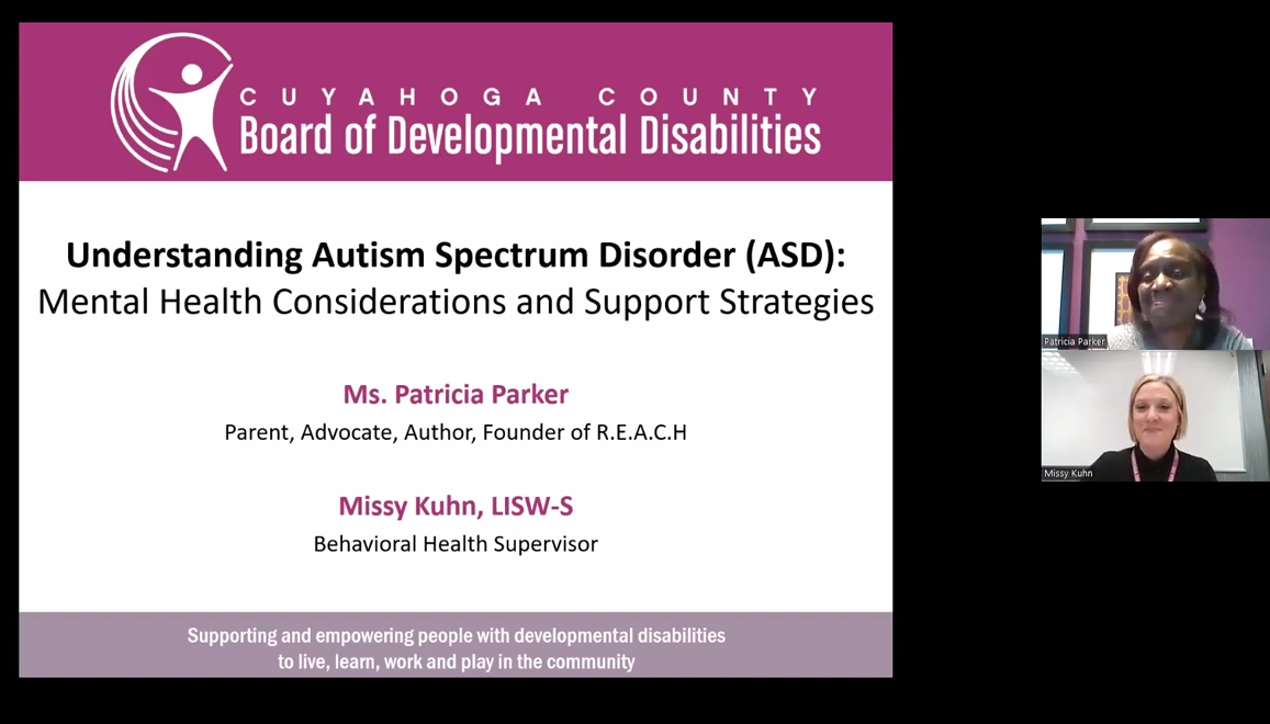 We partnered with the Cuyahoga County Board of Developmental Disabilities for an insightful webinar titled 'Understanding Autism: Mental Health Considerations and Support Strategies.' Matt Gesicki, our Outreach and Education Coordinator, found it particularly informative. Alongside clinical insights, Matt noted that the webinar featured a moving testimony from a mother about her experiences with her adult child, offering valuable personal perspectives.