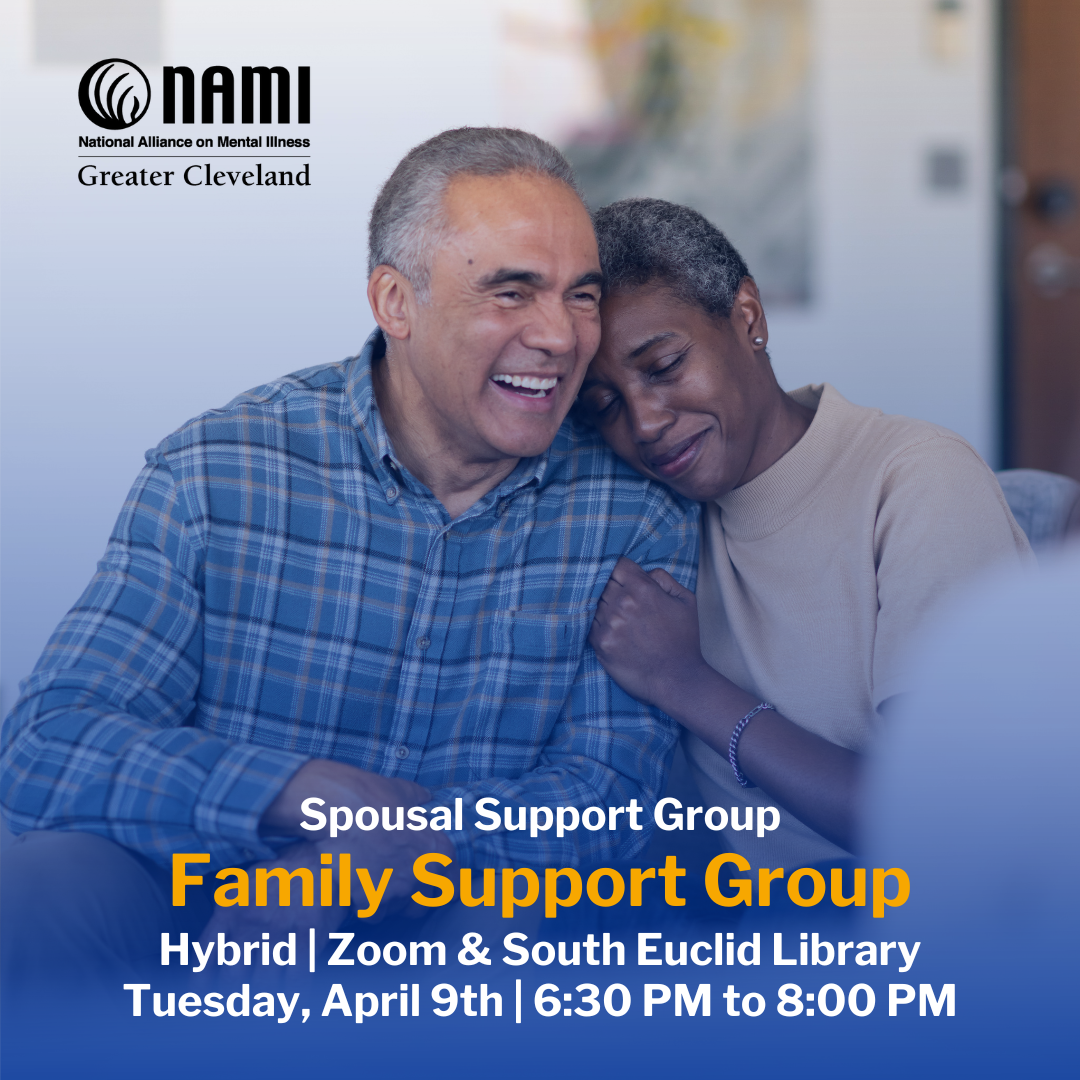 This support group is for spouses of individuals living with a mental health condition. This group follows a hybrid model, meeting in person while also allowing virtual attendance via Zoom. Meets on the second Tuesday of each month at 6:30 - 8:30 PM.