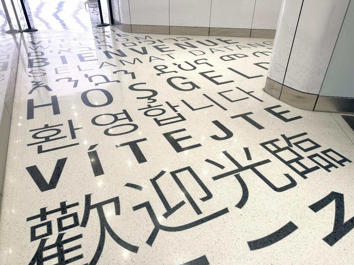The renovation features 260,000 square feet of epoxy terrazzo, including floors in the International Arrivals Corridor that welcome travelers to Chicago in 29 languages.