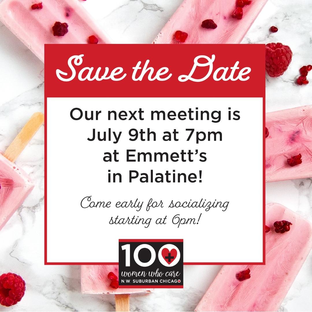 100 Women Who Care is looking for women who want to give back to their community. When 100 ladies donate $100 each, they raise $10,000 for a worthy cause. That's real impact for a local charity! On July 9th, three nominated charities—Chicago Voyagers, Food For Greater Elgin, and Hope Center—will each present for five minutes, and members will vote on which charity will receive $10,000. Learn more at Emmett's Brewing Company, 110 N. Brockway St., Palatine, IL, from 7:00 -8:00 pm (6:00 pm for social hour). For more details CLICK HERE.