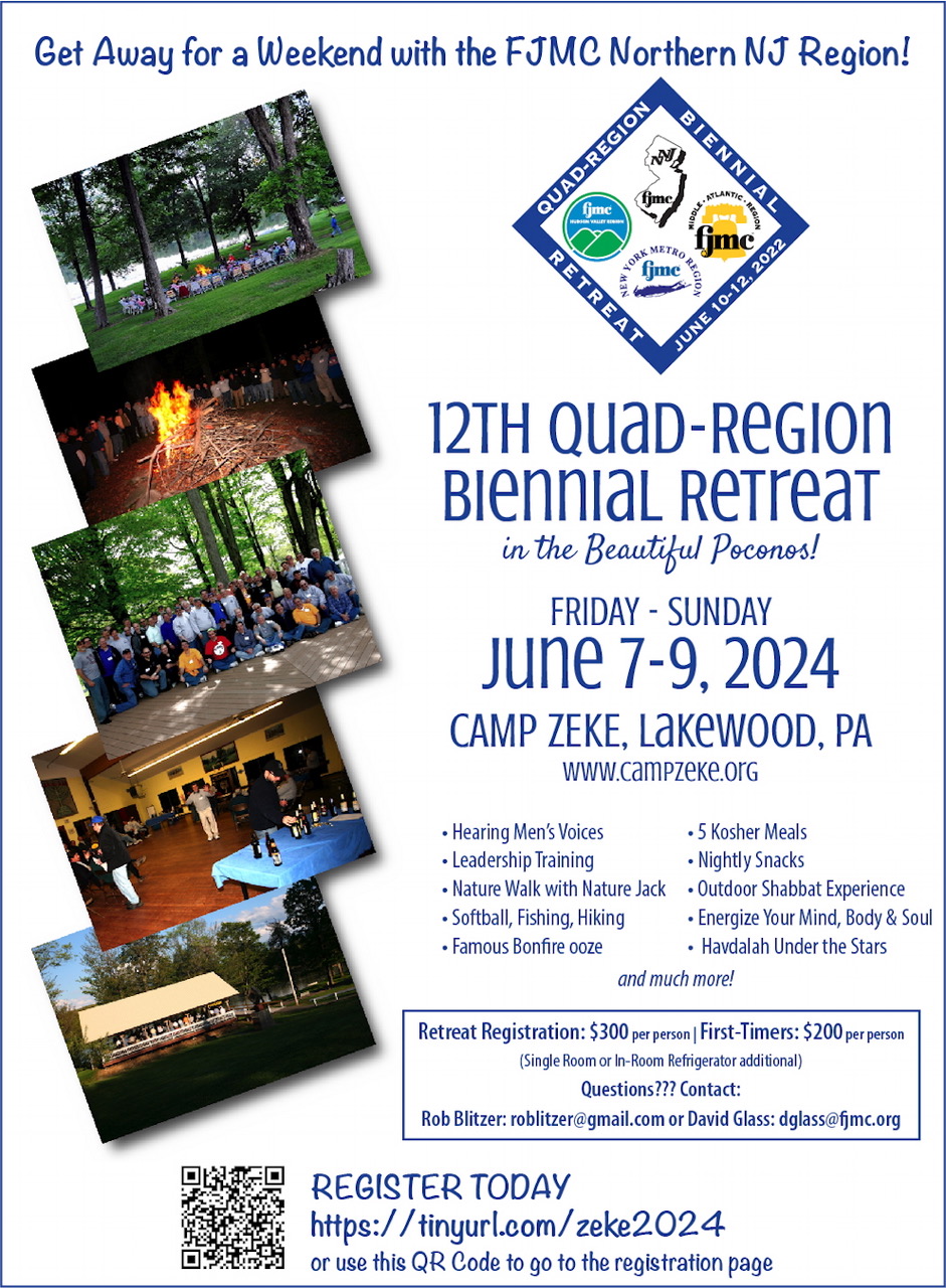 Also, and I can’t say this enough…………. Retreat, Retreat, Retreat……We will be having our 12th Quad-Region Biennial Retreat from June 7th-9th at Camp Zeke in the Poconos. At just $200 for first timers, it’s a virtual bargain! You’ll learn, bond, eat, drink and have fun with your closest friends from NY Metro, NNJR, Mid-Atlantic and Hudson Valley. Just picture Havdalah under the stars around a huge bonfire. What a beautiful thing!