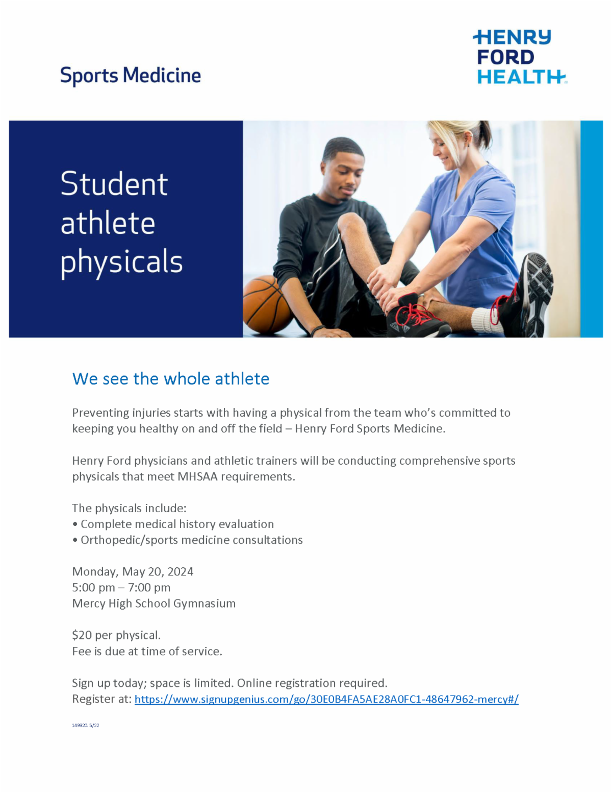 Henry Ford physicians and athletic trainers will be conducting comprehensive sports physicals that meet MHSAA requirements.