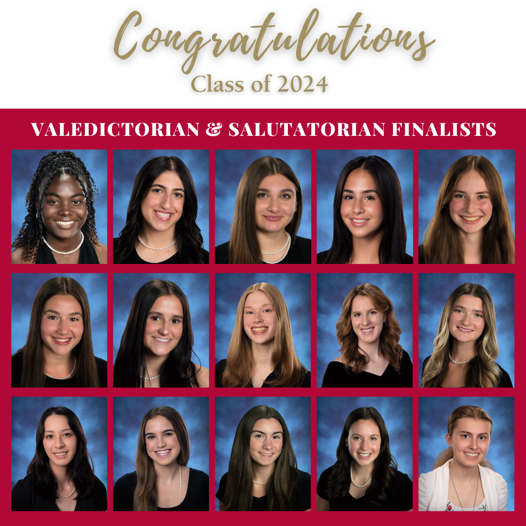 We are proud to congratulate the Class of 2024 Valedictorian, Salutatorians & Finalists. This distinction considers academic record, leadership, service and extracurricular involvement; as well as staff and Senior Class input. Hats off to these extraordinary young Mercy women who inspired and lifted our spirits with their innovative thinking, outstanding achievements and ambitious aspirations!