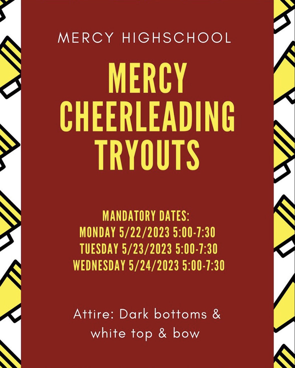Interested in Mercy Cheer? Be sure to attend the mandatory try-out dates: