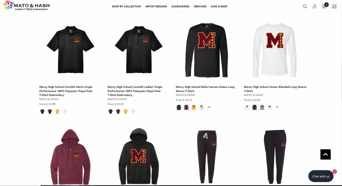 The Marlin Shop has an online store which is open 24/7! The uniform quarter zip will be available for purchase online and in the Marlin Shop. You can choose from a variety of custom made to order Mercy gear. Items will ship directly to you, or you can pick them up from Mato-Hash in Farmington Hills.