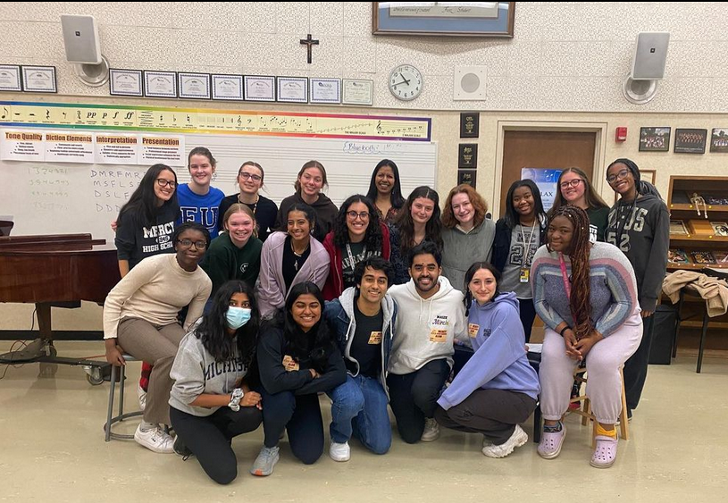 The Mercyaires and students welcomed members of Maize Mirchi, award winning South Asian inspired a cappella group from the University of Michigan. They were treated to a performance and Mercy students exchanged music with their singers. Such a wonderful class experience! Check out performance videos on the Performing Arts Instagram here.