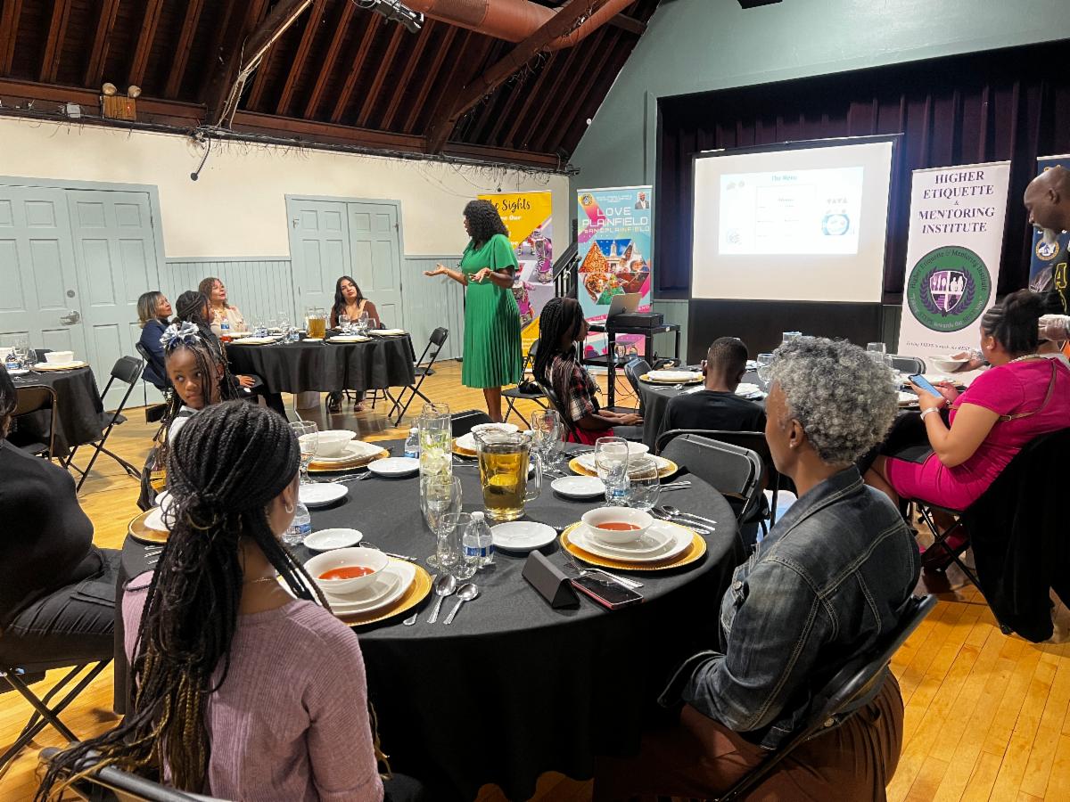 Etiquette instructor Samantha Dow-Hankerson, from the Higher Etiquette Mentoring Institute, imparted valuable knowledge to a group of over 60 individuals.