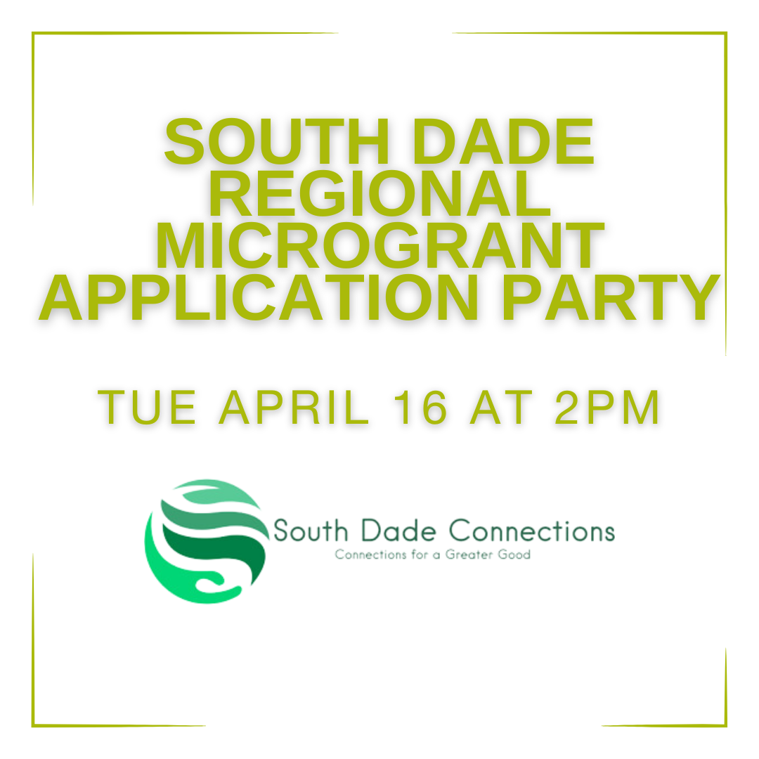 April 16 from 2:00 – 4:00 p.m.: South Dade Microgrant Application Party (500 College Ter, Homestead, FL 33030)