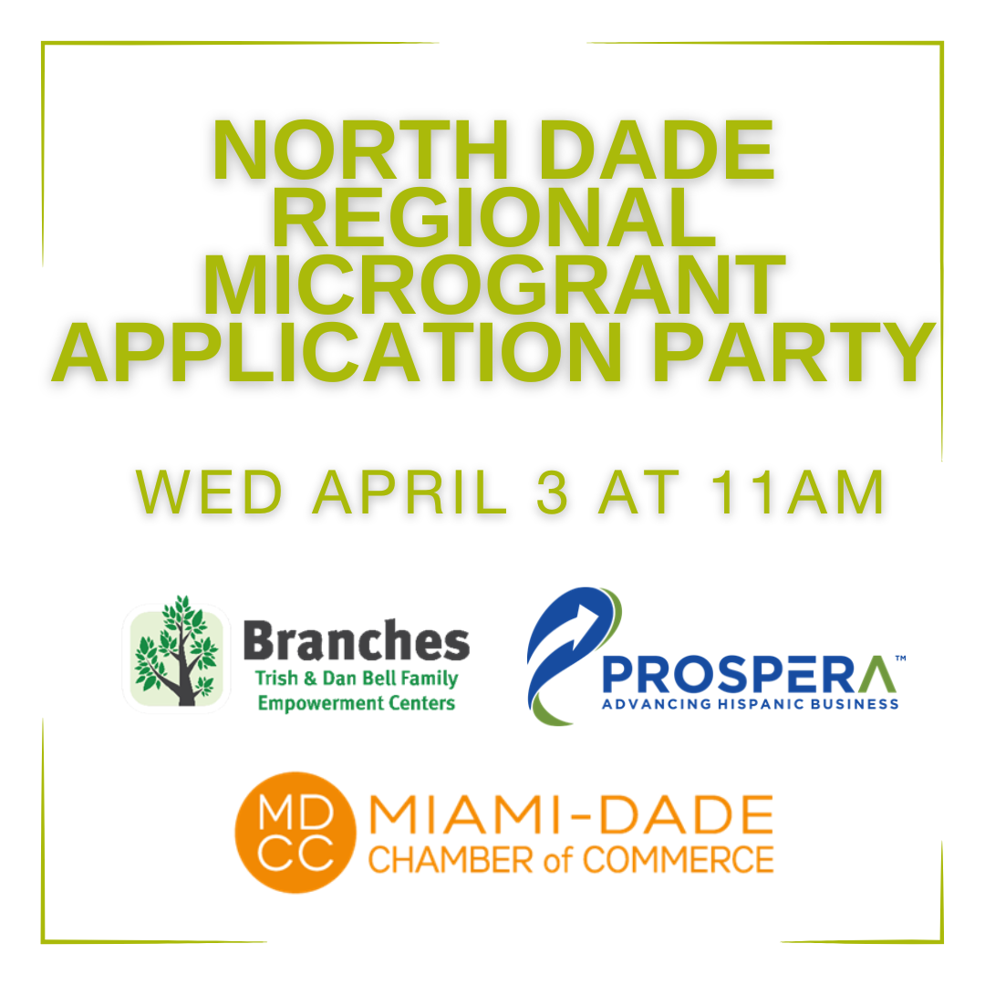 Join our Technical Assistance Providers, Branches, Miami-Dade Chamber of Commerce, and Prospera for our North Dade Application Party.