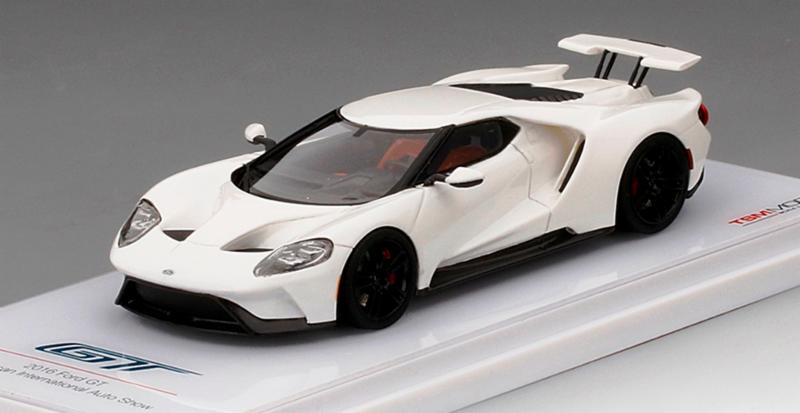 1/43 2016 Ford GT in Frozen White Detroit Auto Show (Wing Up)