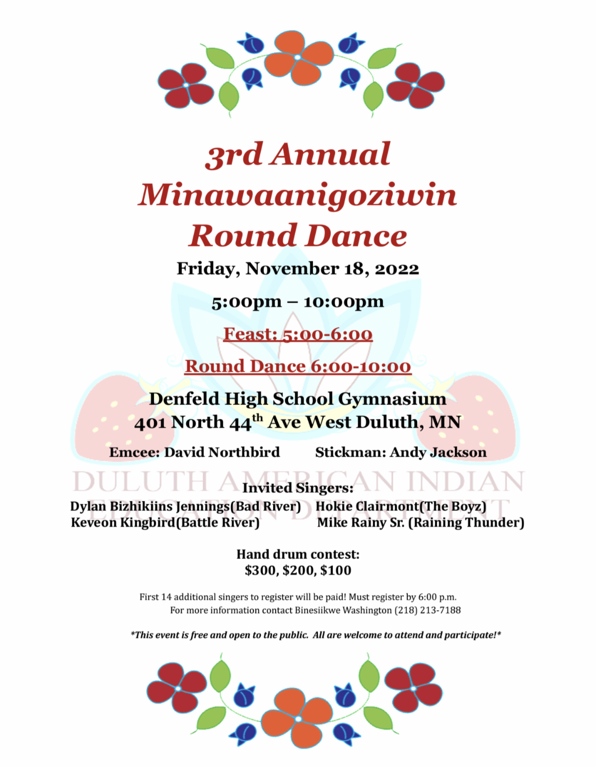 Boozhoo Elders! The Elderly Thanksgiving Meal & Bingo event is scheduled for Wednesday November 16 at Legendary Waters. The meal will be served at noon.