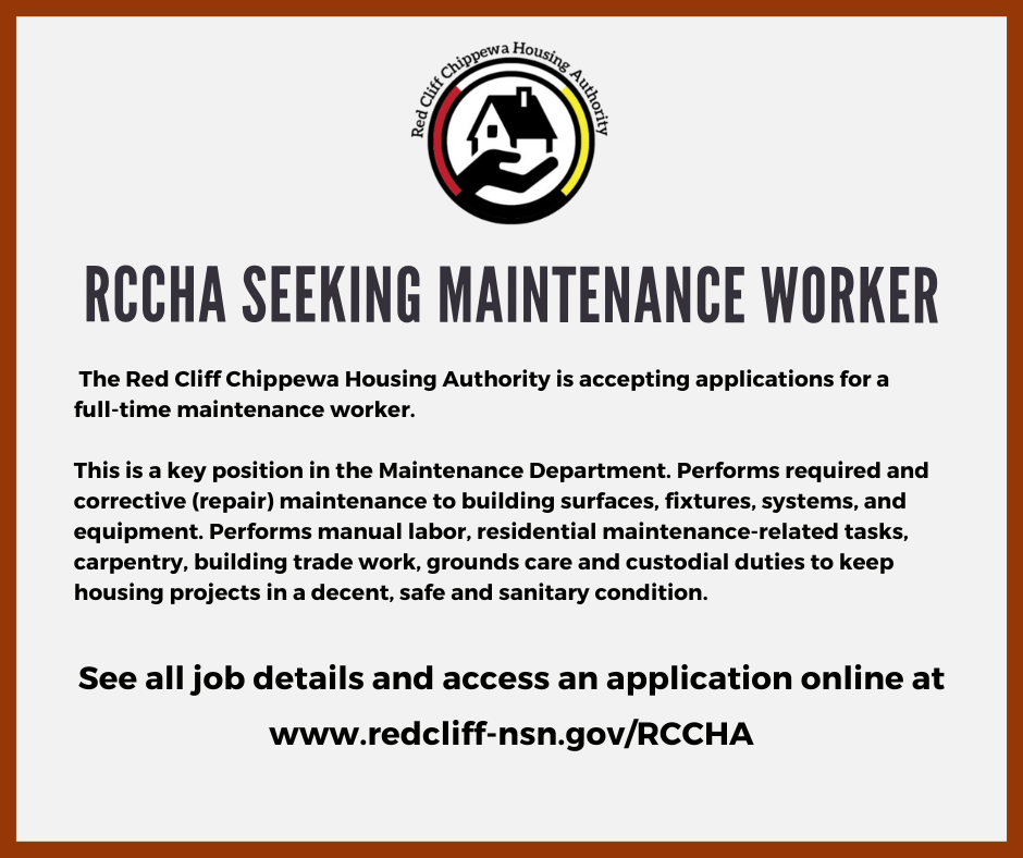 Red Cliff Chippewa Housing Authority is accepting applications for housing and housing assistance!