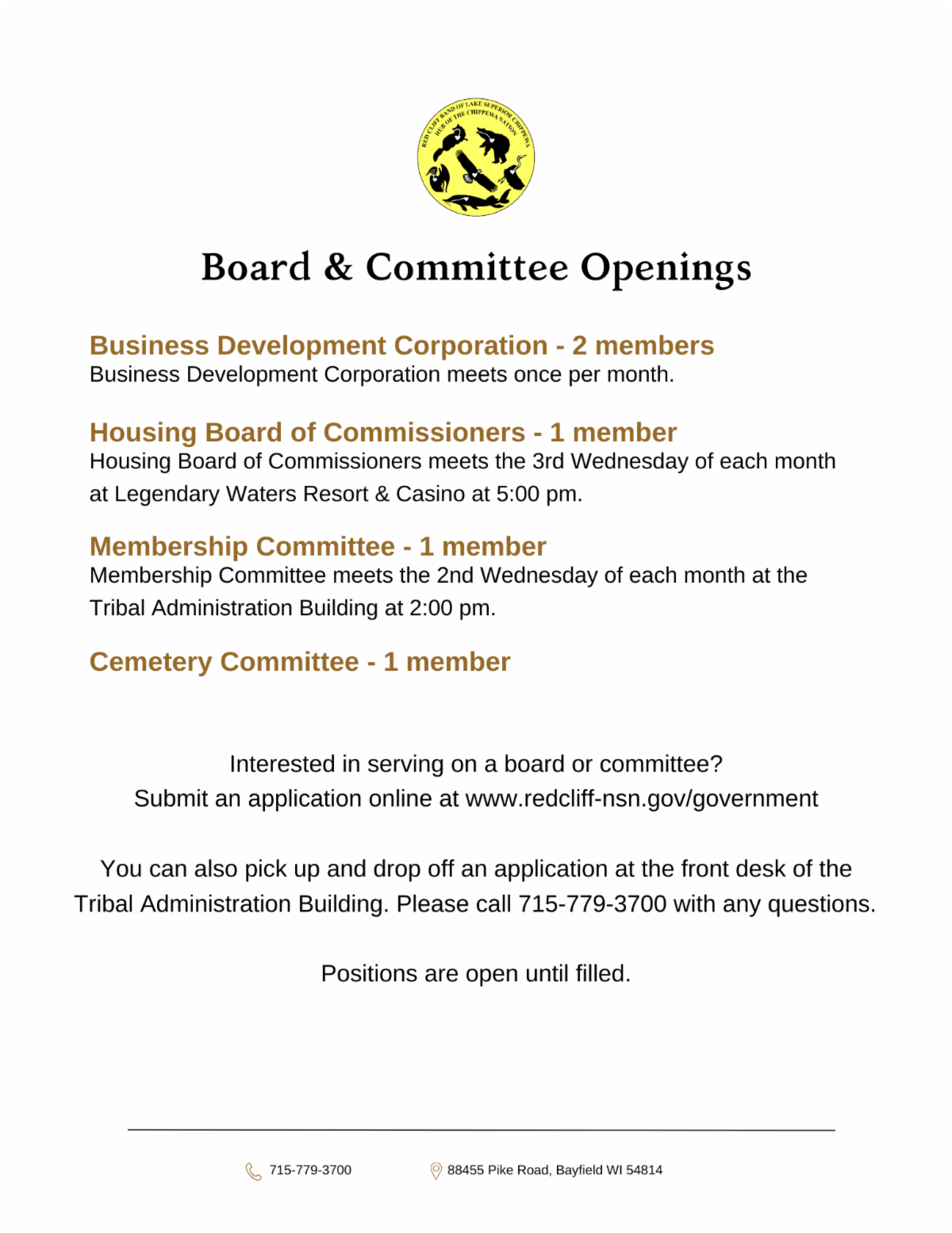Please contact the Tribal Council Secretary with any questions at 715-209-3989.