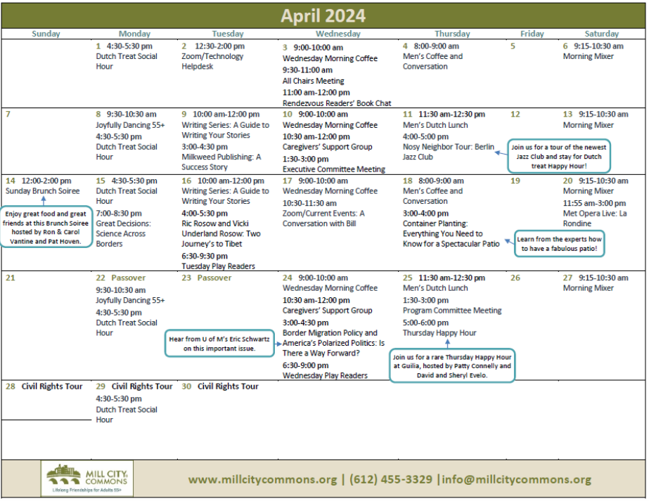 MCC member Ghita Worcester invites members to LaRive on May 9th for a reception and program hosted by the La Rive Great Conversations Lecture Series. Due to the importance and alignment with the MCC Vital Aging programming, they have made this program available to all Mill City Commons members. Iris Freeman, the Founder of the Minnesota Elder Justice Center will speak about "Family Secrets and Stranger Scams; Lifting the Curtain on Elder Abuse". The goal of the Minnesota Elder Justice Center is "to prevent and alleviate abuse, neglect and financial exploitation of elders and vulnerable adults. Iris's saw firsthand the need for a center focusing on elder justice through her work starting with her Graduate School SW Field Placements with Regions Hospital and the Minnesota Department of Health and moving into her career in Long Term Care with a focus on system issues and changes in legislation required to create a safe and equitable system of care for Minnesotans as we age. Iris's presentation will share the political and practical background on elder abuse and available services in Minnesota along with giving us facts and resources about the current environment. Iris is a respected national speaker on this topic and you will leave her session better equipped to handle issues you may see or experience and well has having knowledge of local resources. The reception begins at 6:30 pm with drinks and appetizers and an opportunity to meet Iris; the presentation will be from 7:30-8:30 pm at LaRive Condominiums, 110 Bank Street SE. Limited guest parking in building and ample on-street metered parking available.