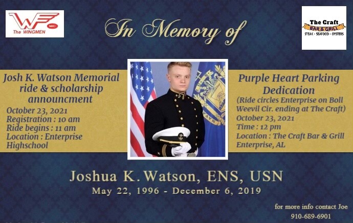 Josh K. Watson Memorial Ride & Scholarship Announcement followed by Purple Heart Parking Dedication.