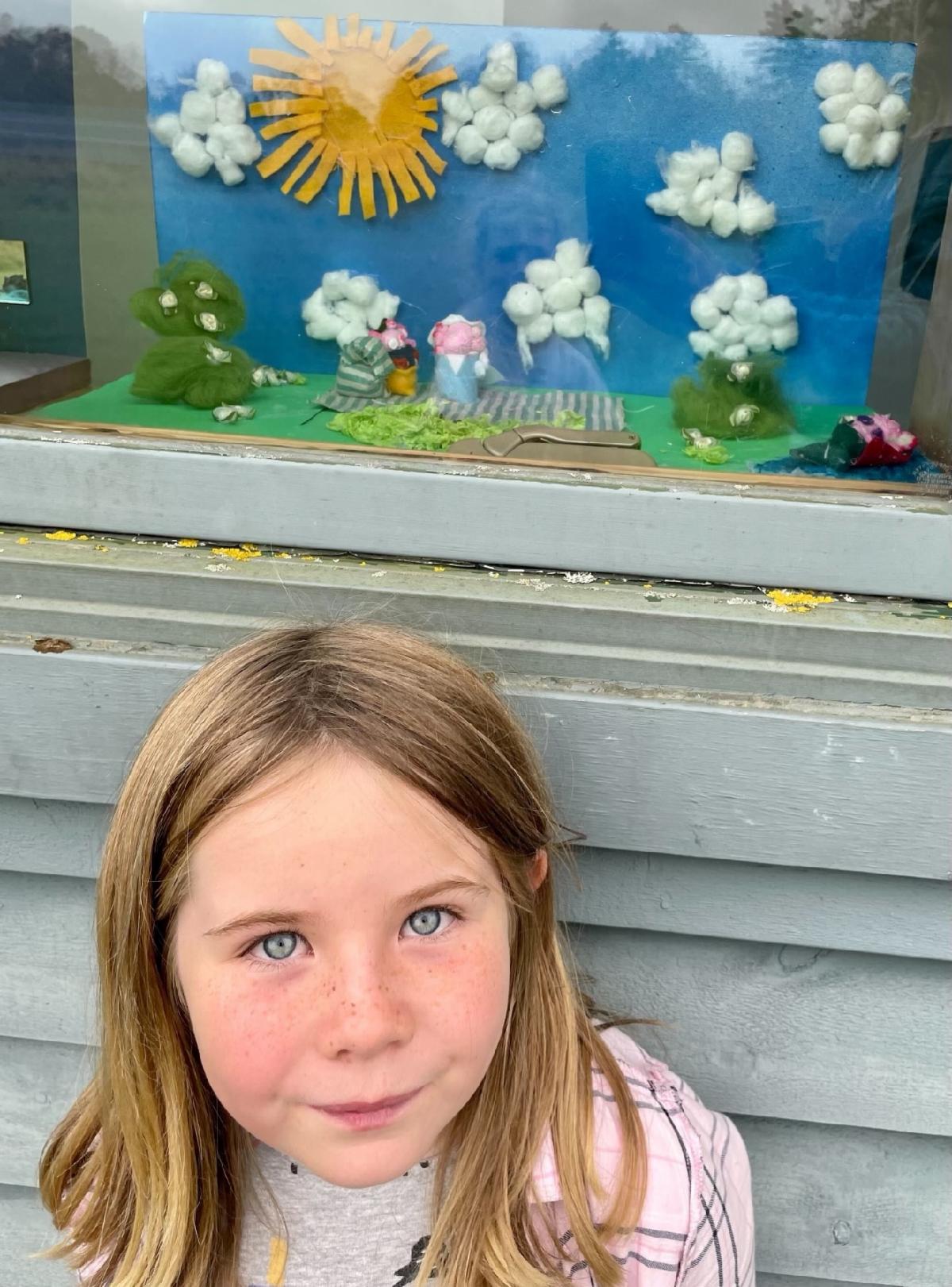 The Junipers enjoyed participating in Art Week! The children were in all of the group projects in some meaningful way, whether that was big or small. In the “miniatures” group, they got their very own presentation from an amazing local artist, Tara Morin. The Junipers were then able to walk around and observe the older children as they planned for their own miniature models. All left feeling inspired and decided to create our own miniatures for our classroom dollhouse. We created our own doll families, with the children designing their clothing from felt, using buttons for eyes (Tara had discussed the movie ‘Coraline’ in her presentation and how they used miniatures to create the film) and yarn for hair. We then created our own gallery in the doll house by painting our very own mini canvas!