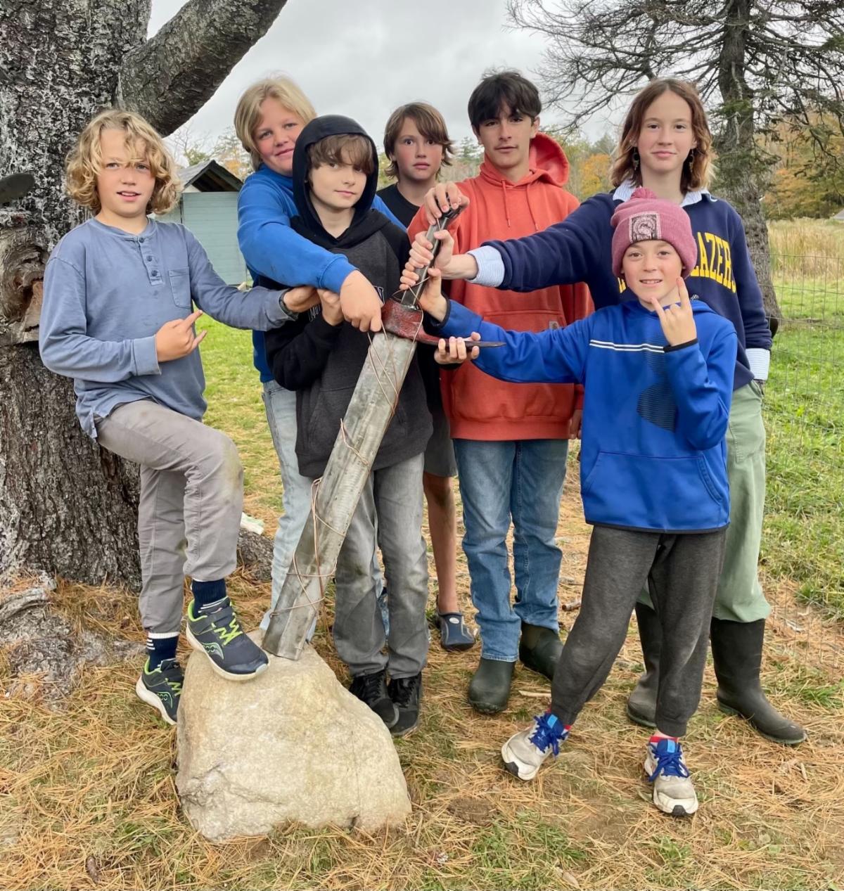 Visiting artist Seth Richardson arrived to help weld and bring the vision to life. With Seth, the children learned about welding safely, prepped the pieces, observed welding in action and even had an opportunity to use the equipment. While the sword was being built, the children drilled out the rock as a base for the sword (with help from visiting artist Bill Heiden).
