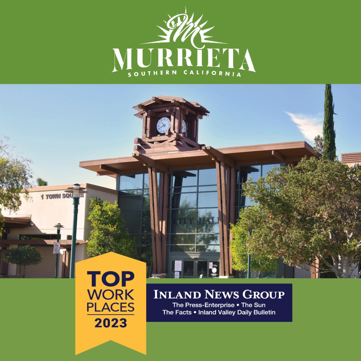 - The City of Murrieta was named a 2023 Top Workplace
