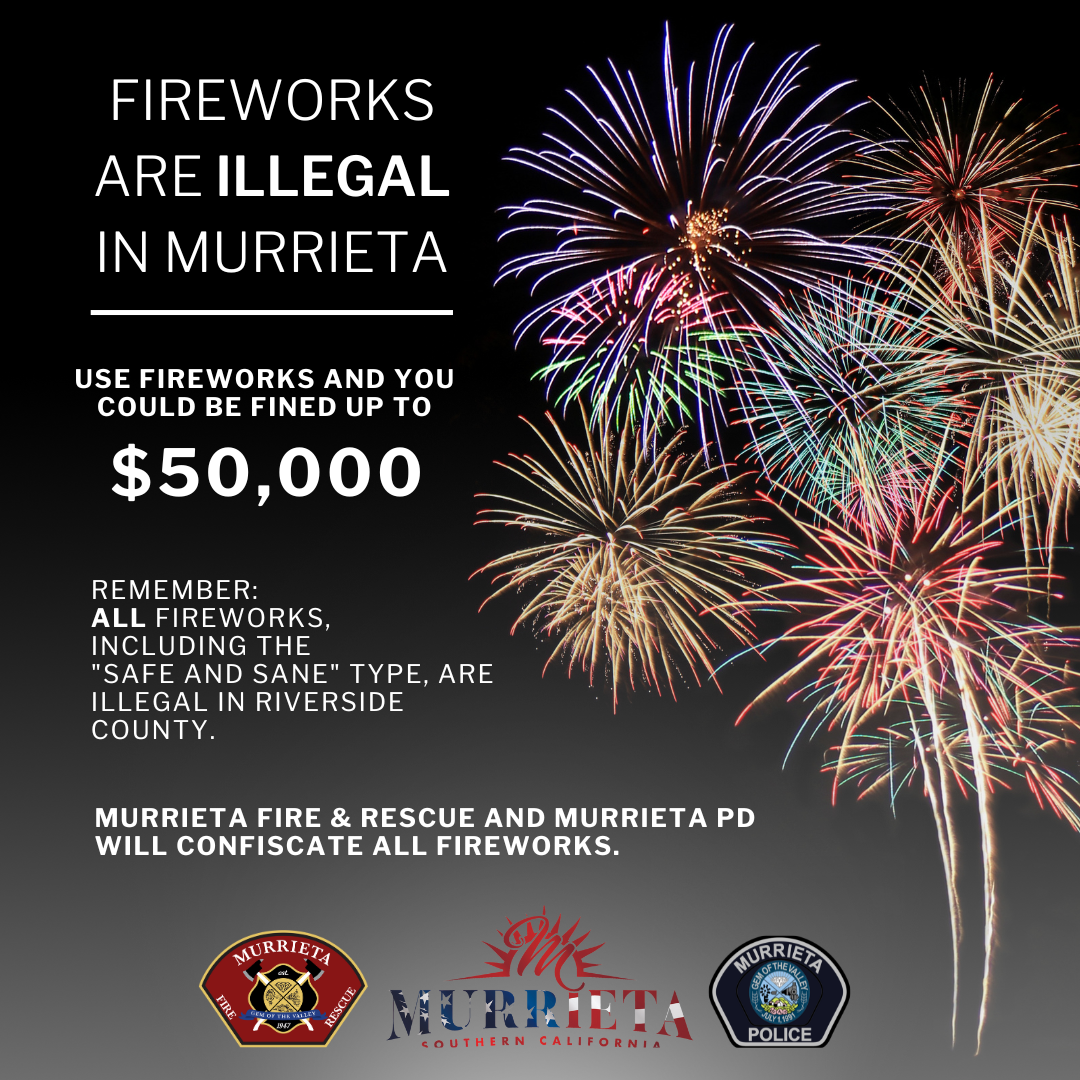 Each year, Murrieta Police Dispatch receives numerous calls for service related to fireworks. Please use the online form to report fireworks to help keep 911 lines open for emergencies.