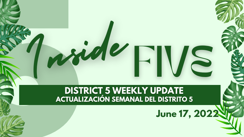 En el Distrito 5, AMAMOS los árboles. Desde ayudar a limpiar nuestro aire hasta contribuir positivamente a nuestra salud, y desde mantenernos frescos y ayudar a ahorrar energía, hasta incluso ayudar a reducir el crimen y aumentar el valor de las propiedades, los beneficios sociales y ambientales de los árboles son infinitos.