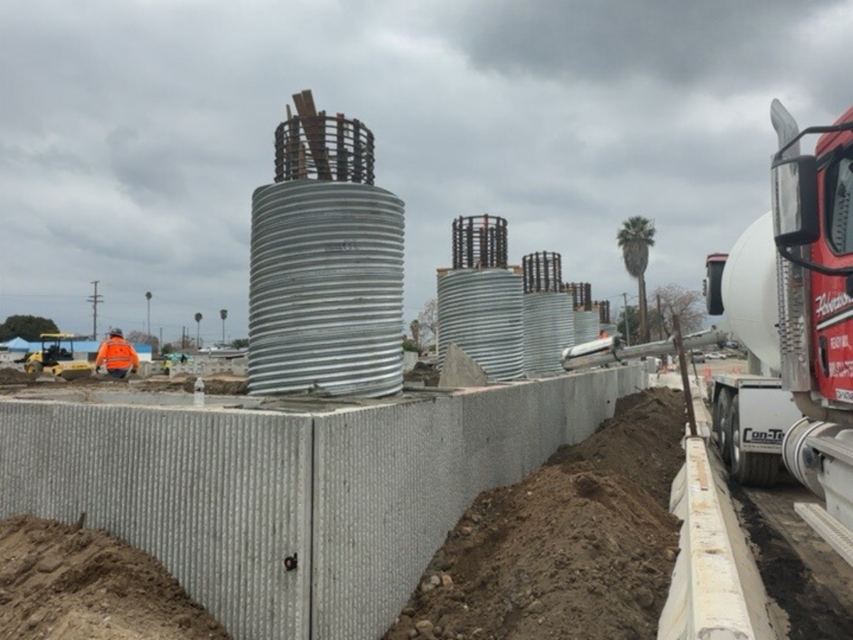 Construction crews continue to work within the BNSF Railyard as part of the Mt. Vernon Avenue Bridge project. Crews are currently building columns that will support the new bridge. This work requires installing rebar, setting formwork, pouring concrete, and allowing time for the concrete to cure.