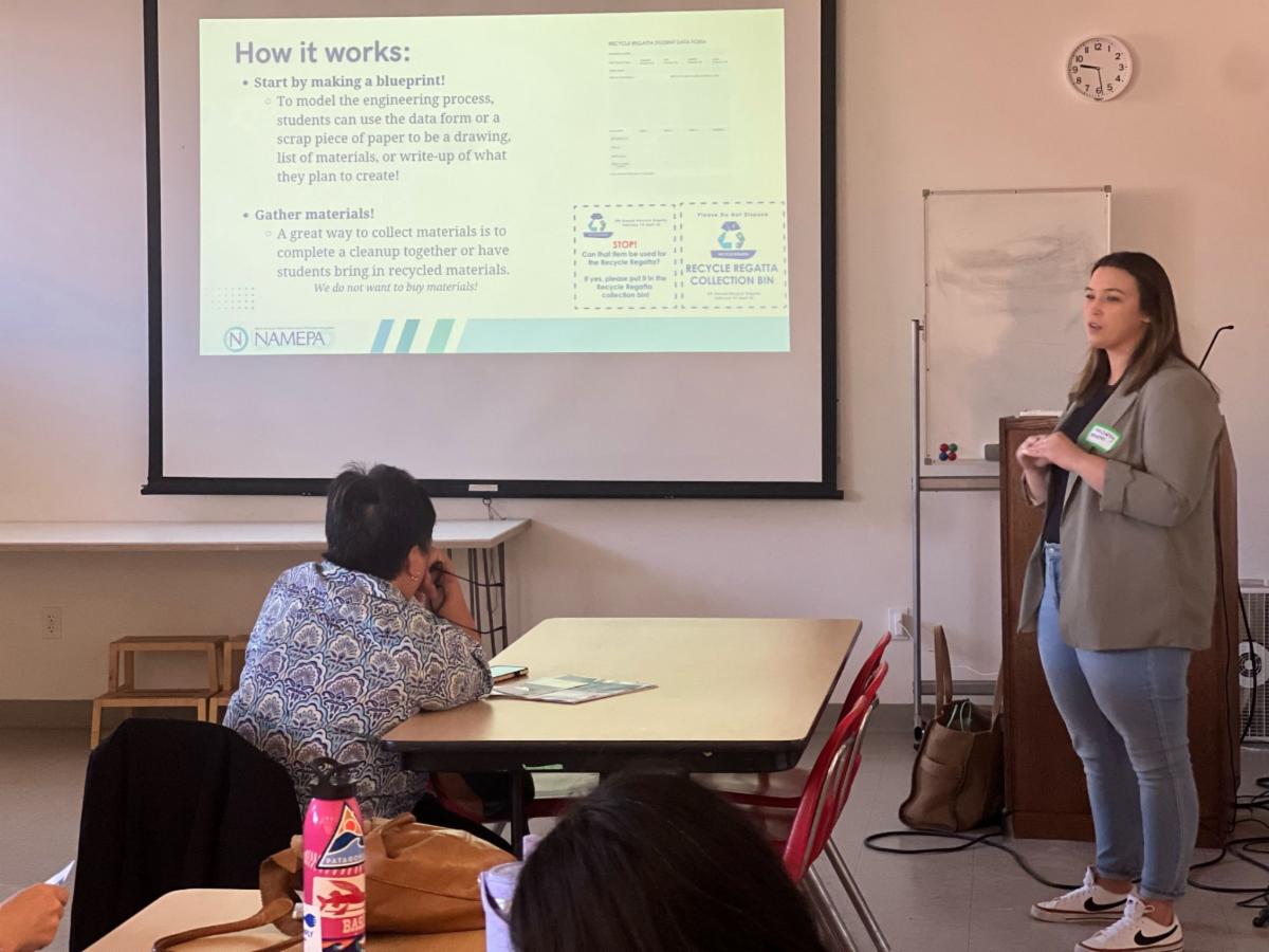 NAMEPA’s Education Team presented the Recycle Regatta at the Natural History Museum of Los Angeles Country as part of the LA STEM Symposium. As a founding member of the LA STEM Collective, NAMEPA has been able to provide enrichment to LAUSD students since 2020. The Recycle Regatta is sponsored by NAMEPA and our educational partners, Educational Passages and the New England Science and Sailing Foundation to teach students STEAM principles. | |