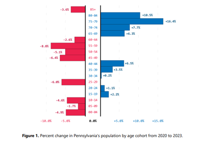 Pennsylvania’s older population continues to grow. A new study released from the Pennsylvania State Data Center showed that the senior population was the fastest growing age cohort since 2020 in the Commonwealth. Pennsylvania continues to be an attractive destination for retirees, with lower taxes and lower cost of living than neighboring states. Other age groups that grew since 2020 include young adults (15 – 24 year olds) and early middle aged adults (30 – 44 year olds). For more information on the importance of shopping local, contact Tyler Day at (570) 891-4656.