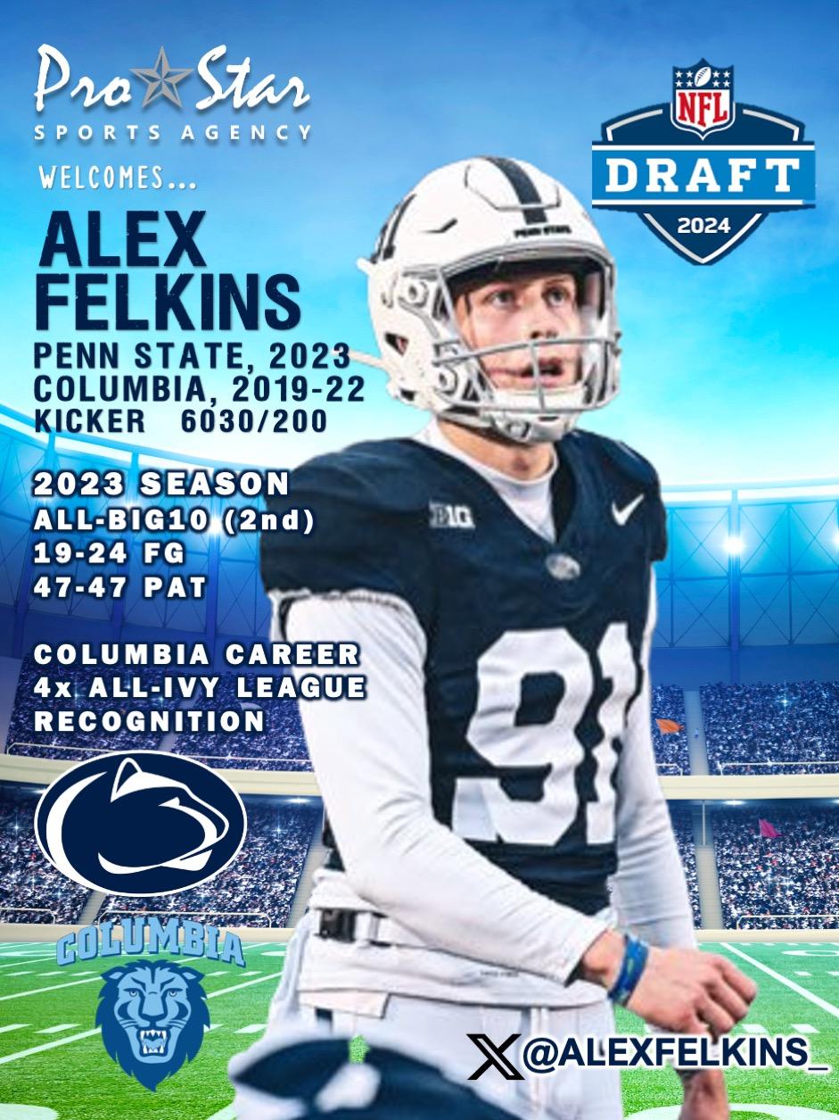 February, 2024 -- We are happy to announce the addition of 2024 Draft-Eligible Kicker, ALEX FELKINS as a new client of the agency.