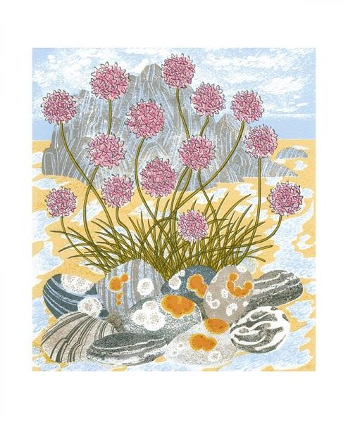 'Sea Pinks and Pebbles' from a screenprint by Angie Lewin - click image to visit TheBlankCardCompany