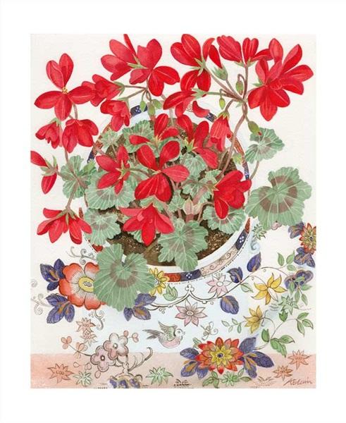 'Pelargonium in a Floral Cup' from a watercolour by Angie Lewin NEW - click image to visit TheBlankCardCompany