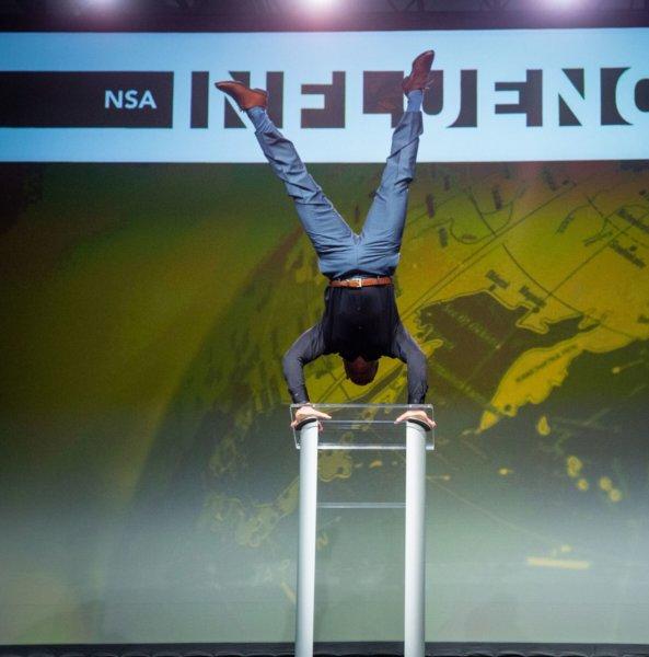 Dan Thurmon delivers a powerful keynote in a jaw-dropping style. He is known for doing handstands on podiums while discussing balance; juggling sharp objects to teach principles of performance under pressure; and weaving through the audience on a six-foot unicycle to visually amplify principles for navigating change.