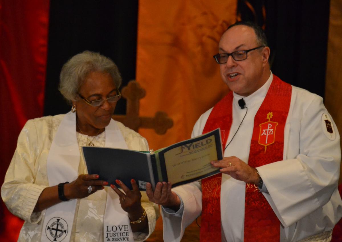 Northern Illinois United Methodists hear God’s call to set-apart ministries in different ways, and The United Methodist Church has a number of categories for those who lead and serve, lay and clergy. Barbara Sutton (pictured to the right with Bishop Dan Schwerin) was consecrated as a deaconess at the UMC General Conference last month and the NIL recognized and affirmed her consecration. (A deaconess or home missioner is a layperson who commits to a lifetime of love and justice.)