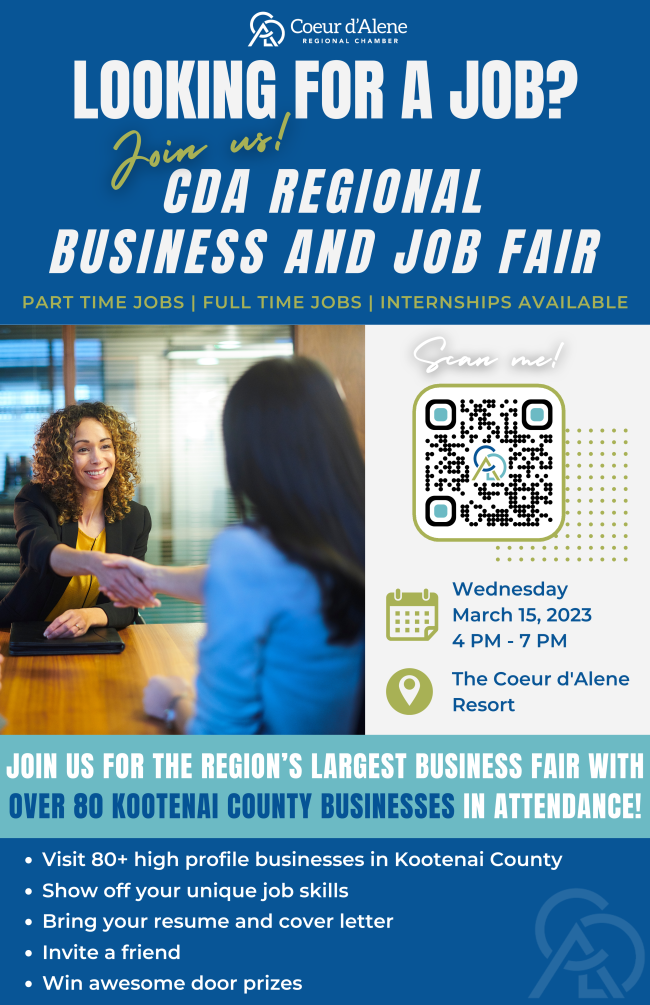 The Coeur d'Alene Chamber of Commerce is holding its Regional Business and Job Fair. NIC Faculty and Staff are invited to share event details with students.