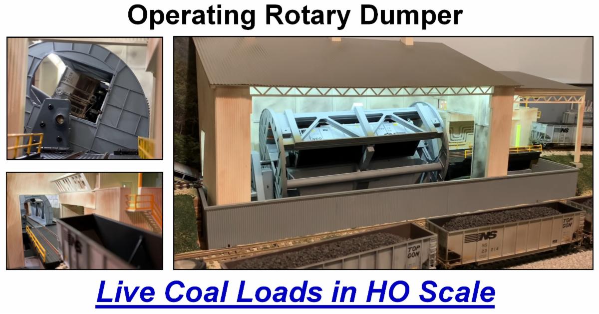 Here's a close look at an operating rotary dumper on Josh's layout, and the next part of a series on live coal loads on his layout! In this video, we will follow the operation of a coal train arriving at the yard. The cut of hoppers will then each enter the scratch-built rotary dumper to be individually emptied of their load. Quite something to watch!