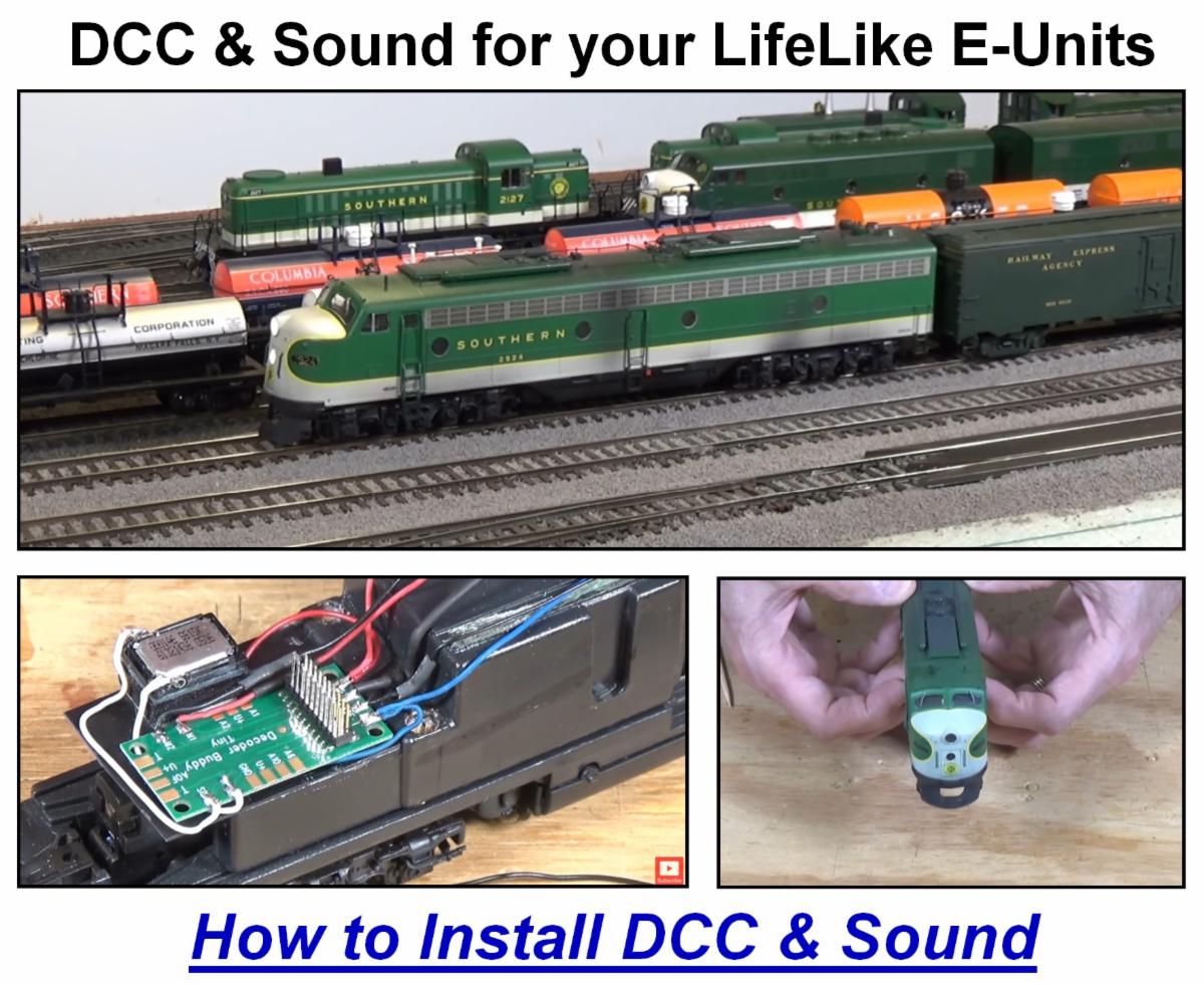 For at least the last 2 years folks had been asking Larry Puckett to do a video on installing DCC and sound in LifeLike E-units so here you go. This is a long video mainly due to all the wires that need to be run for the lights and power pickup. But that is to be expected with these "legacy" locomotive models produced before manufacturers were installing sockets for DCC let alone decoders. Larry decided to use a Decoder Buddy Mini circuit board so he could experiment with different decoder brands, but it also tended to actually make the installation easier. So sit back with a cup of something and enjoy the project, and you may want to even watch it in two sittings.