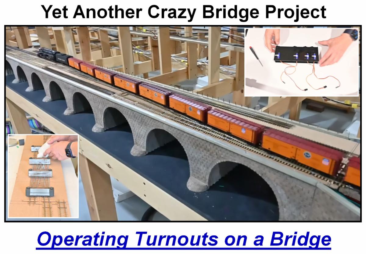 Welcome to another season of the North Edge and Everee private model railroad build. In this episode, rcgrabbag, AKA Jonathan Warfield, will show how he is installing a hand-made #10 double crossover and two hand-made #10 single turnouts on an existing stone arch bridge. The crazy part is having all of the crossover turnouts operable by remote control and DCC addressable like all the other turnouts on his layout!