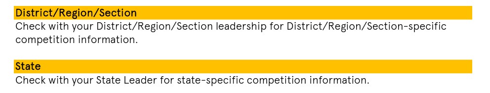 Below are the two areas you will find in the national guidelines document that will be personalized with PA FBLA specific information once they are published.