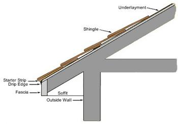 You can see the black metal drip edge in the left picture which ensures that when it rains, the water doesn't seep back toward the facia, but instead drips to the ground.