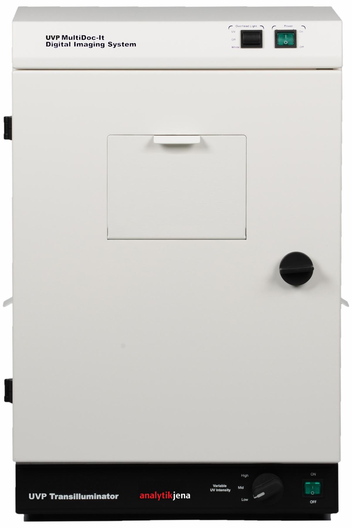 The UVP MultiDoc-It is an affordable option for gel imaging of stained gels. The darkroom comes assembled with choice of UV transilluminator and UV safety shut off switches triggered by opening the door. The exclusive software controls the camera functions, live preview of images, image capture and image enhancement. For brilliant color TLC gel imaging of samples such as Ginkgo Biloba, the UVP MultiDoc-It TLC model is available. The model includes two UVGL-25 UV Lamps for placement overhead inside the darkroom (no transilluminator is included with this model).