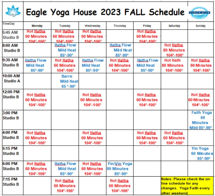 We have a new Fall/Winter Schedule with 3 additional classes that starts November 14th.