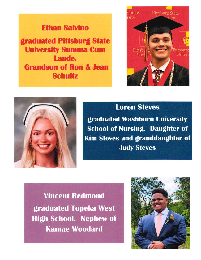 “Congratulations!” We wish you success – both in your faith in God and in your pursuits of life. Keep moving in faith knowing that you are not alone. The Holy Spirit lives within and will enable you to conquer the trials and challenges of life. Amen.
