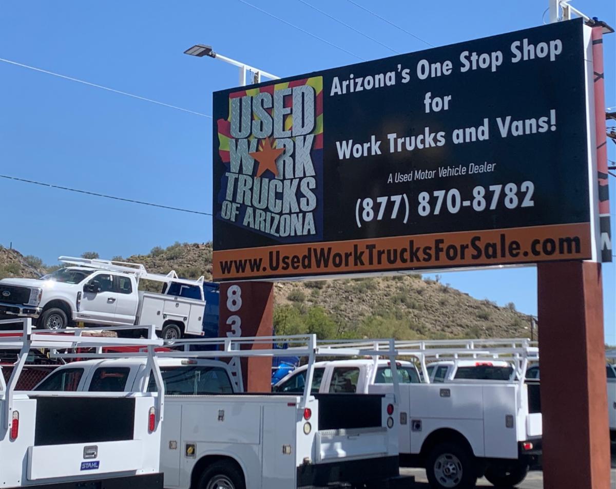 We have moved. Come check out our new work truck dealership in the East Valley. Located at 8325 East Main street, Mesa AZ 85207. New store hours of Monday to Friday from 9am till 5pm and Saturday from 10 am till 2pm. Call or Text Bob at 480-330-8898 for all your used work truck and vans needs. |