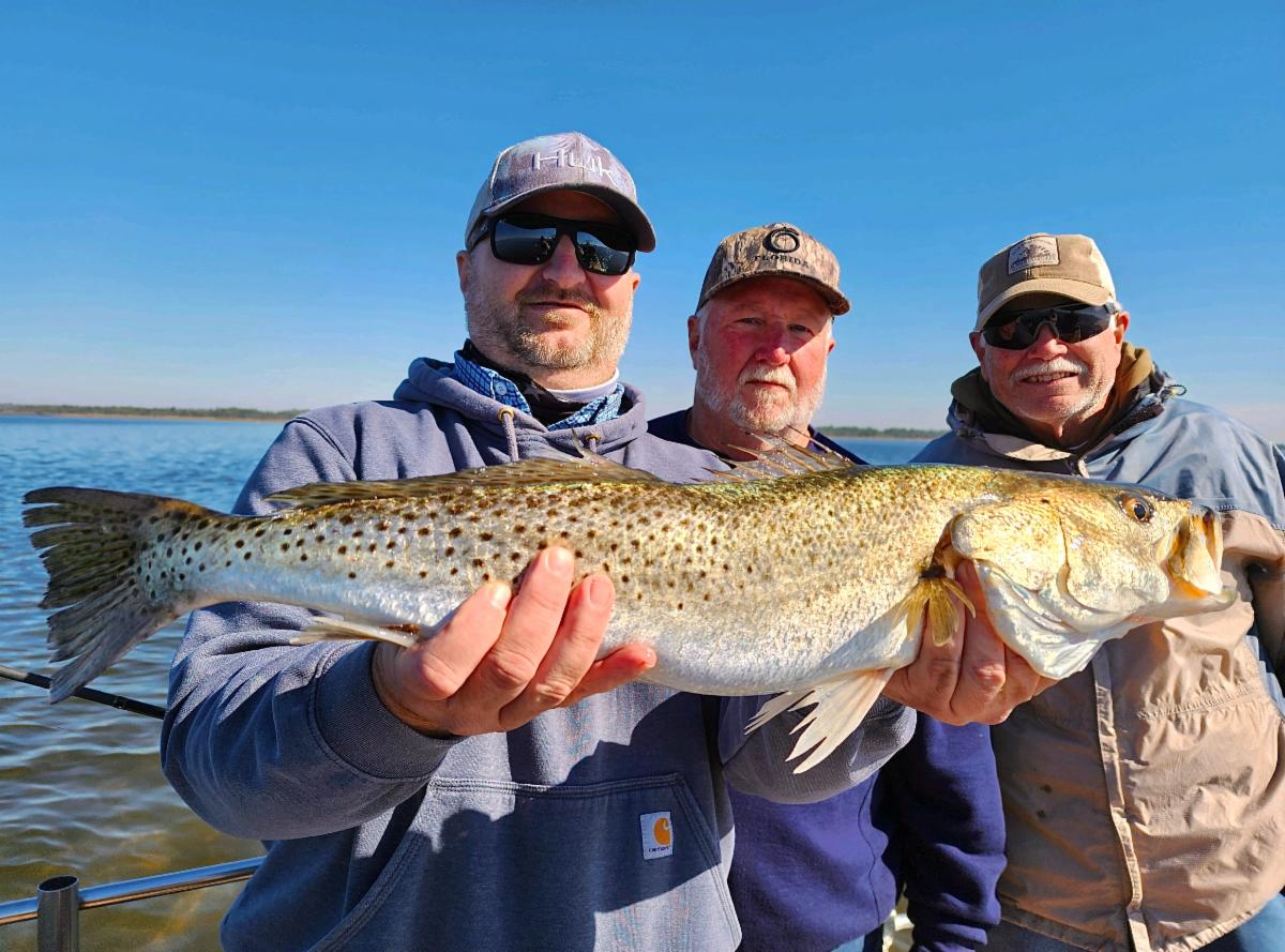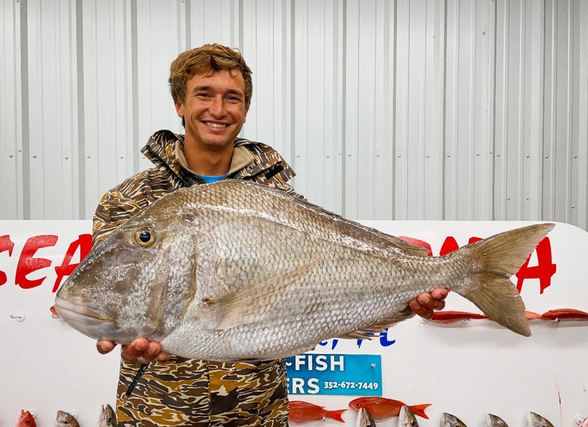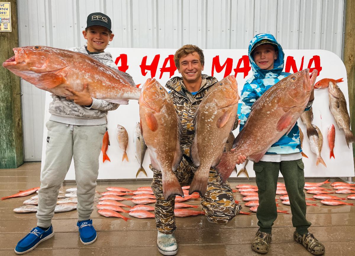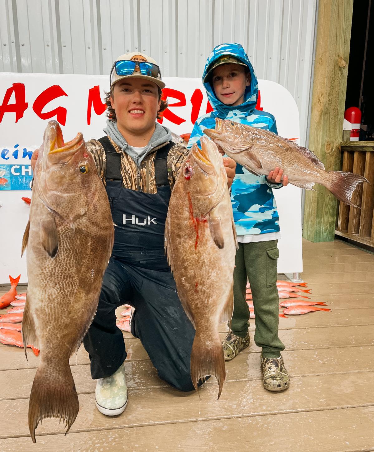 | Jason Leek reeled in a stud red grouper with Capt. Chase Norwood. | Another gorgeous gag grouper caught aboard the Chase N Fish vessel. Unfortunately they are not in season so the fish was safely released to be caught another day. | Whitney Stemple, our former Sea Hag Bartender now a registered nurse, went fishing with her mama for her birthday! | These three retired FWC officers went fishing for redfish & trout with Capt. Randy Harris. They had a great day! | Scamp grouper are some of the best tasting grouper fillets! The Chase N Fish crew came back with enough to eat for days! | The Bullock family put a smack down on red grouper, scamp grouper, vermillion snapper, & more with Capt. Chase Norwood, Capt. Jadon Bray & first-mate, Cooper Nemcovic. | Keaton & his dad, Russ, had a fun time reeling in trout with Capt. Kyle Skipper. | |
