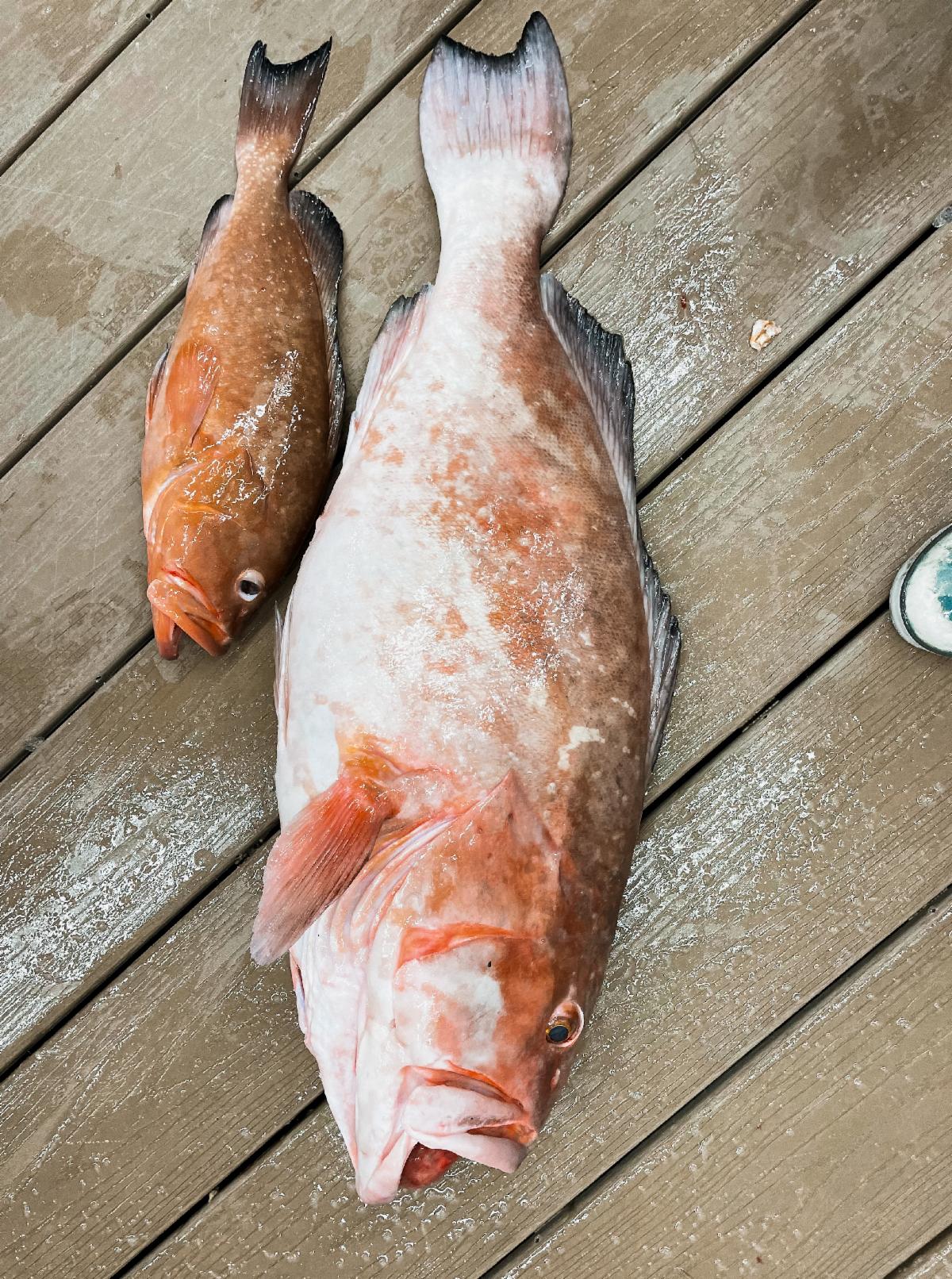 Check out the size of this red grouper that the Chase N Fish crew brought back after one of their charters! It is pictured next to a regular legal size red grouper! What a MONSTER!