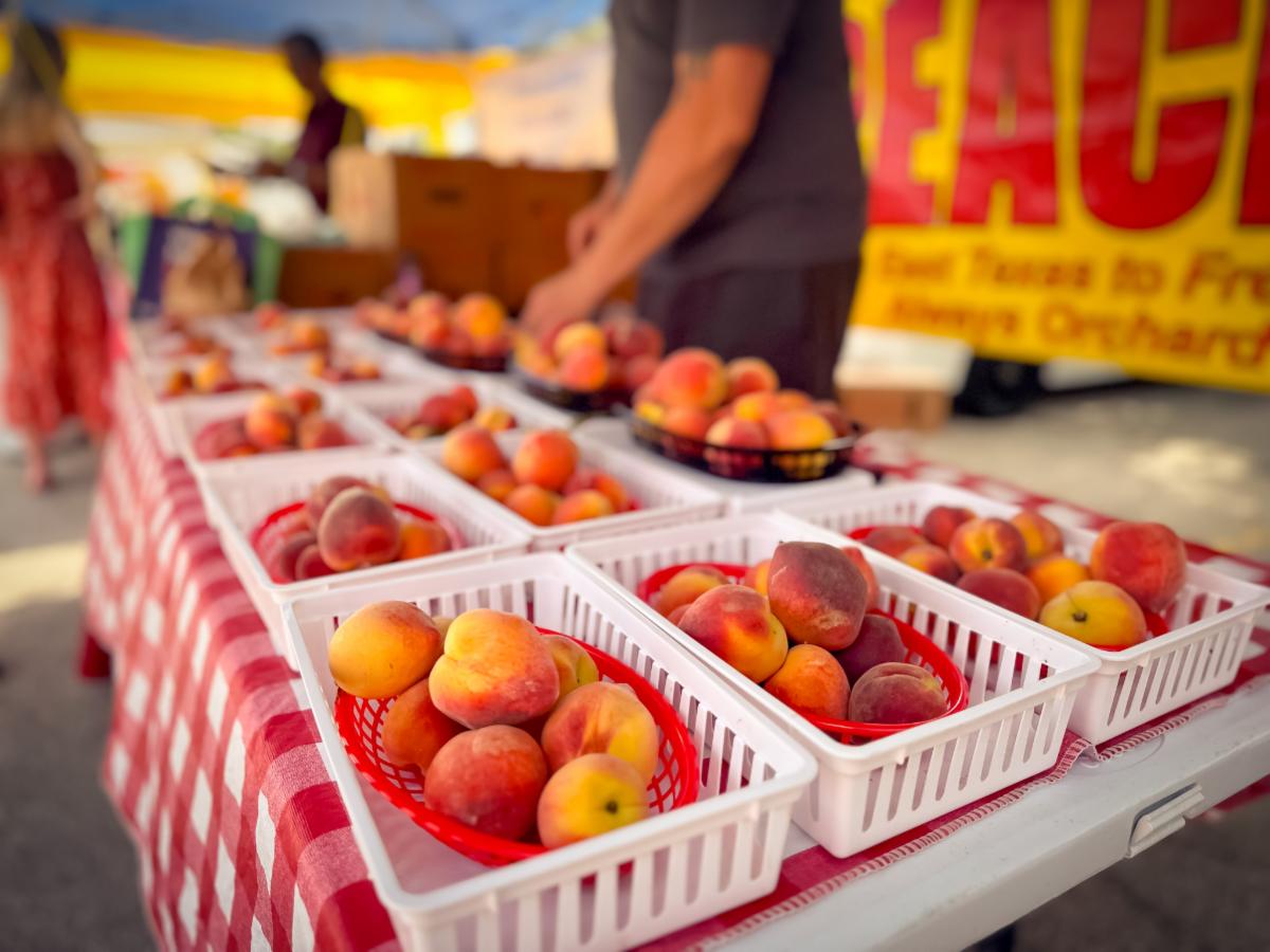 Summer at the Westchase District Farmers Market also marks the return of ripe Texas peaches, courtesy of annual market vendor Hesters Peaches. Peaches from the Texas Hill Country are highly anticipated every year. John Carey, Westchase District Farmers Market manager, highlights the popularity of Hesters Peaches, saying, “Hesters Peaches has a large following. Whenever peach season arrives, we see people flock to the market every Thursday to get another batch.”