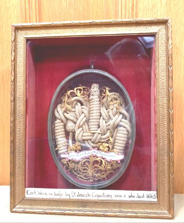 The relic that the Franciscan Retreats houses is one of the cords from St. Joseph’s Franciscan habit. Being it is one he had worn in life, there is a very good chance that this 400-year-old cord, displayed in our chapel, levitated with this famous flyer.