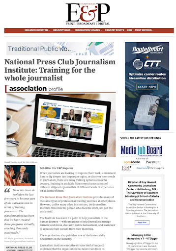 Editor & Publisher Magazine featured the National Press Club Journalism Institute in its April print and digital editions.